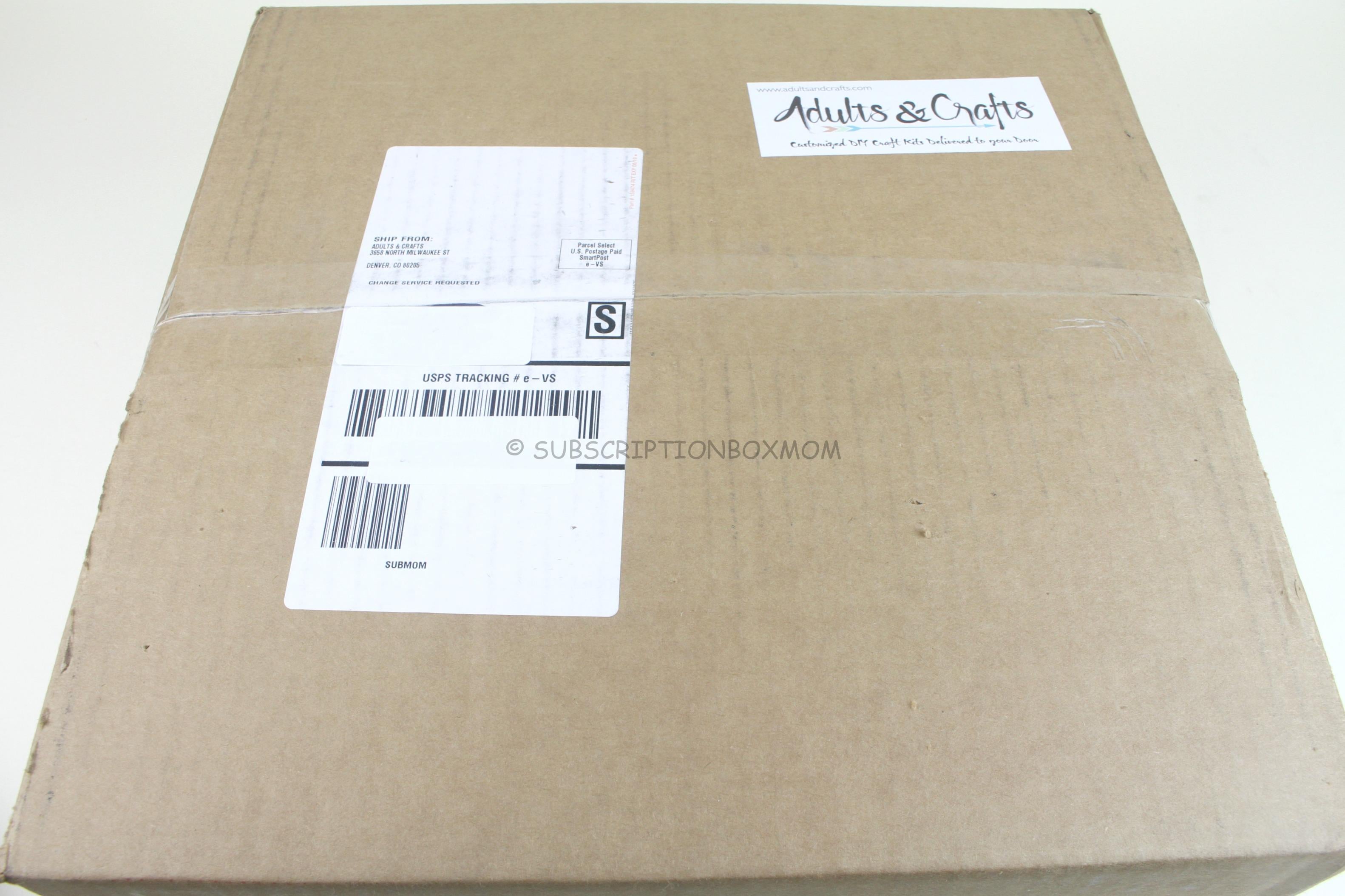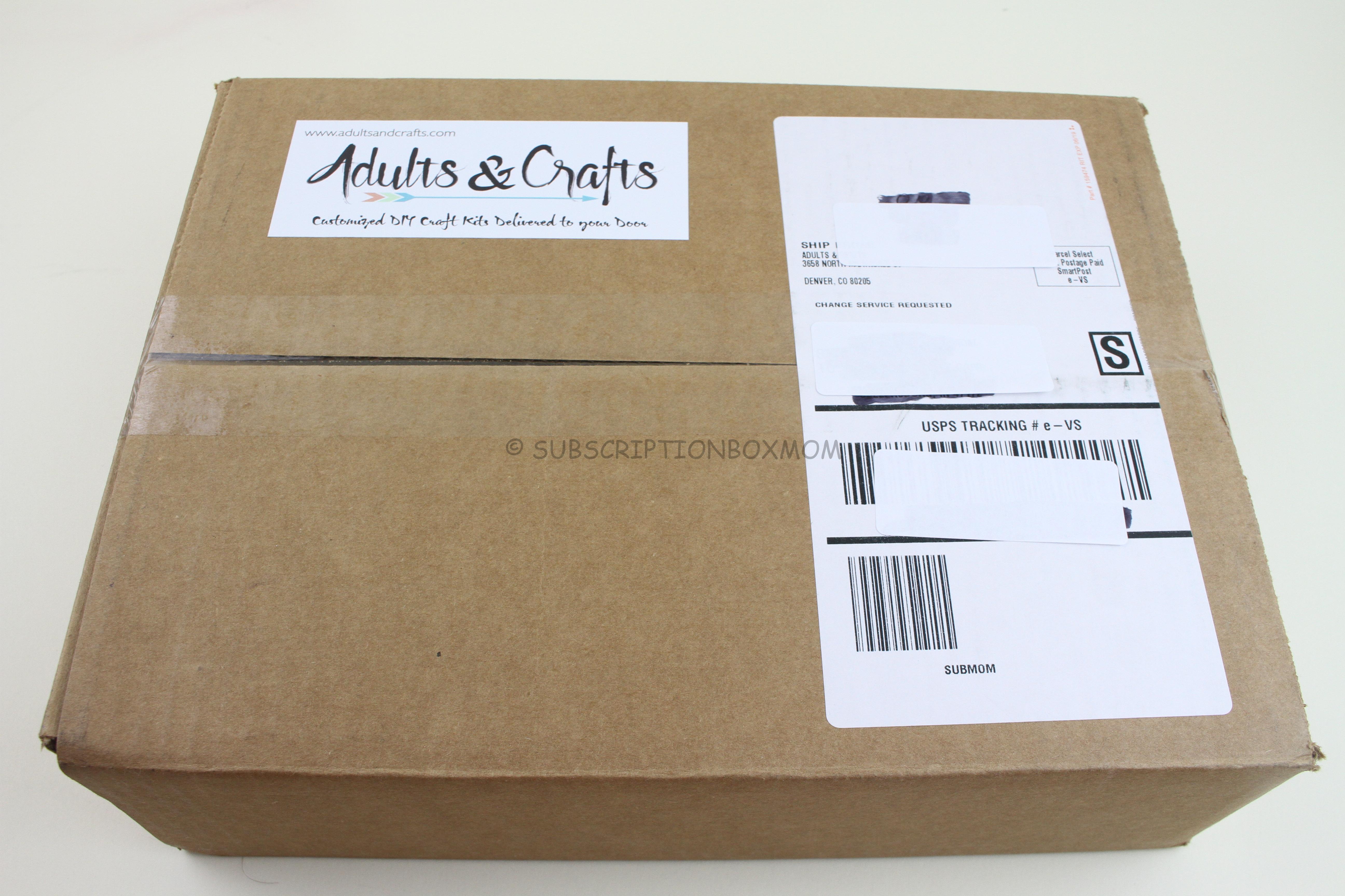 Adults & Crafts is a craft subscription for adults. Boxes are $33.00/month (plus shipping) and come with all the materials to complete a project or projects.
