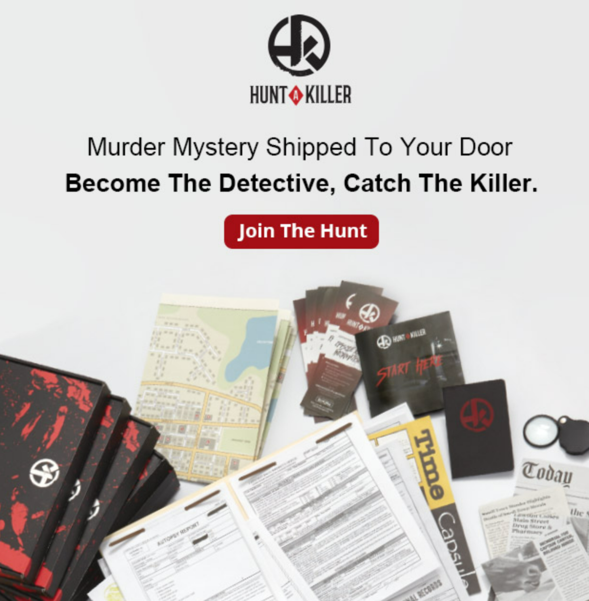 Enter the mind of a serial killer while he taunts you from afar. Clues from a serial killer you can touch. Embark on a journey of deceit, betrayal, and rampage on continuing saga without ever leaving your home. New items delivered each month that tell a story for you to interpret – for you to solve.