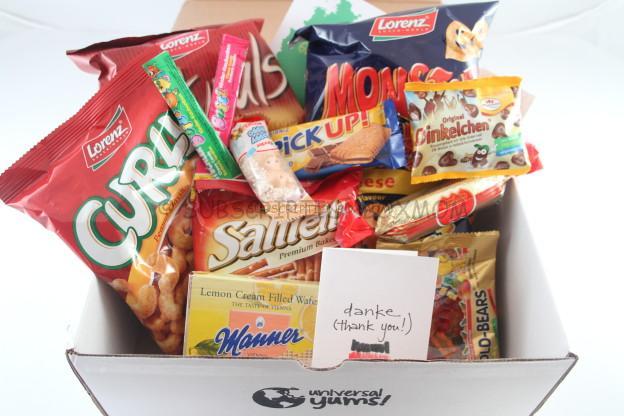 Universal Yums sends boxes of currated snacks and treats from all over the world. Each month a new destination is picked. Each box is packed with various kinds of snacks from salty to sweet. There are two sizes, the Yum or Yum Yum.